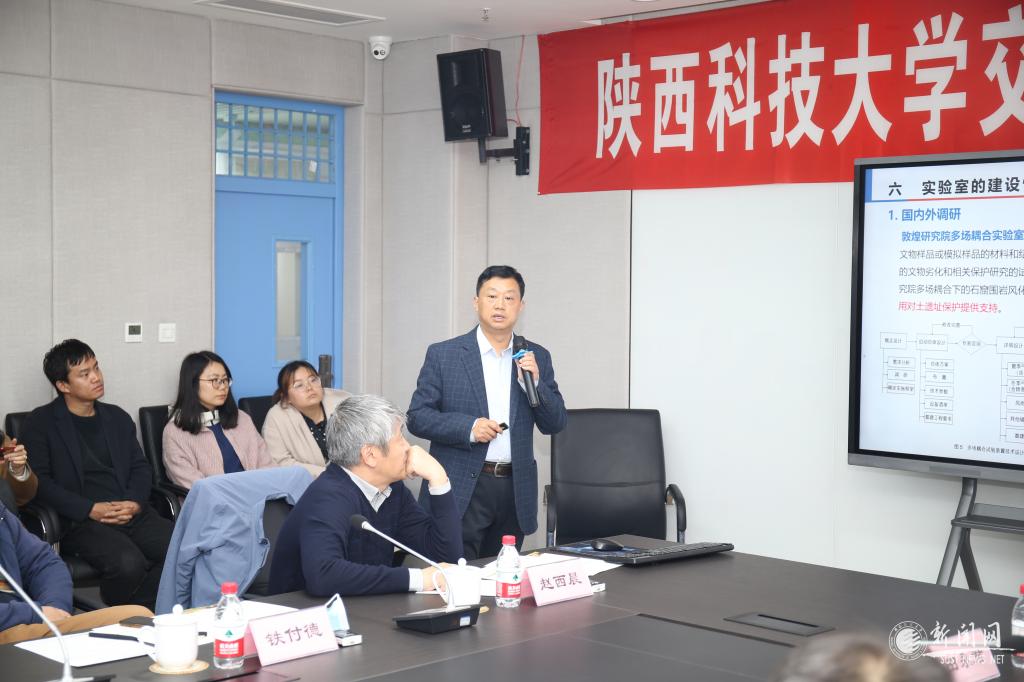 黄剑锋介绍了学校学科发展历程和总体情况,“十三五”期间学校学科建设取得的成效,并提出了目前存在的问题和面临的机遇。从实验室建设的必要性、功能及目标、实验室建设方案设计与可行性分析这四个方面介绍了地下文物保护材料与技术实验室的初步建设方案。