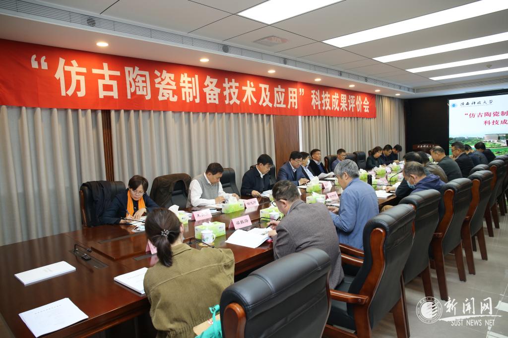 随后,由陕西科技大学牵头,上海大学、蒙娜丽莎集团股份有限公司、珠海旭日陶瓷有限公司共同参与完成的“古陶瓷制备技术与现代应用”科技成果评价会在学校逸夫楼506会议室举行。评价委员会组长由李述汤院士担任,张统一院士、魏炳波院士任副组长。校长李志健、副校长黄剑锋、成果完成方代表参加了会议,会议由陕西省科技成果评价中心主任冯凯主持。