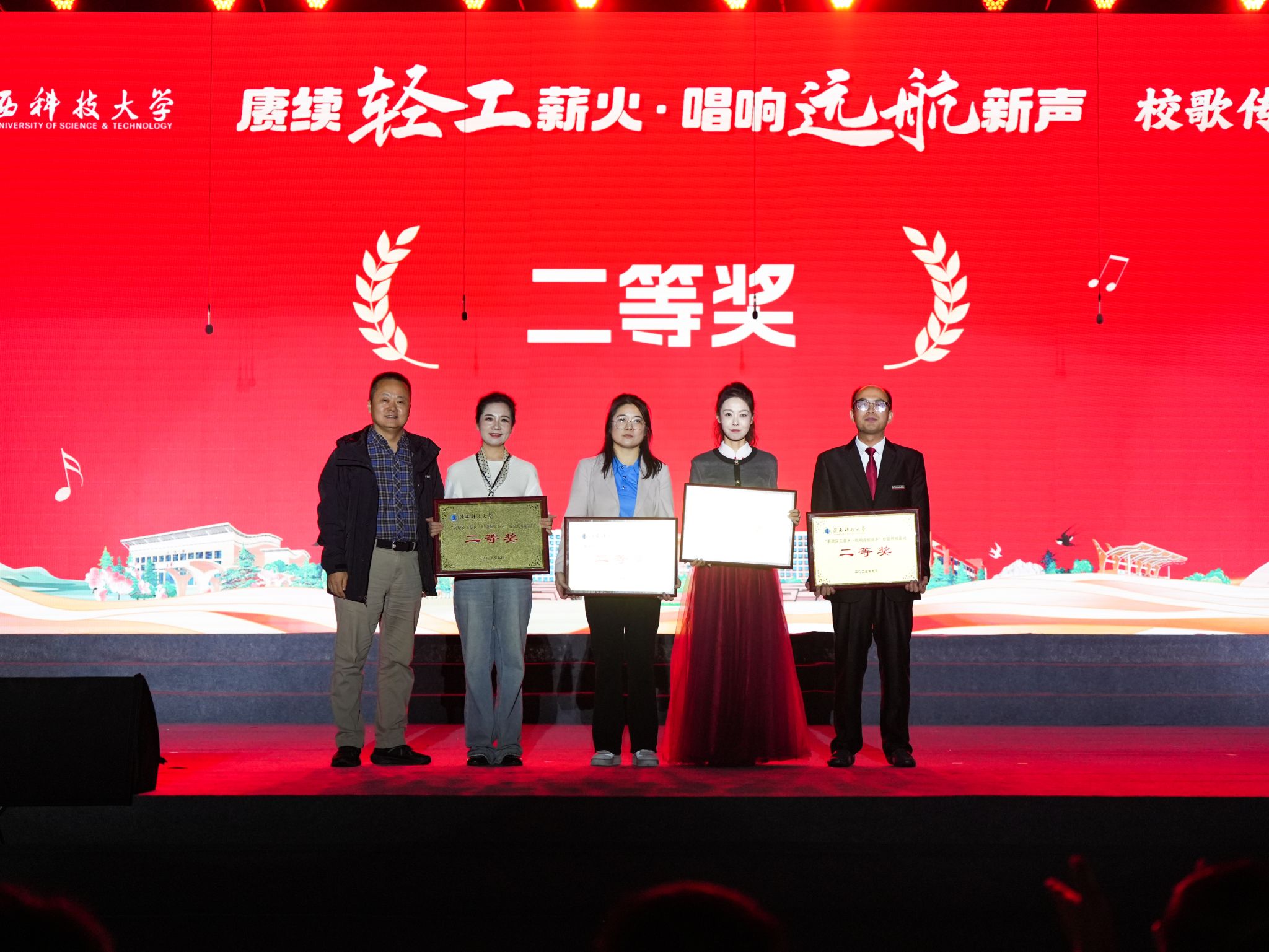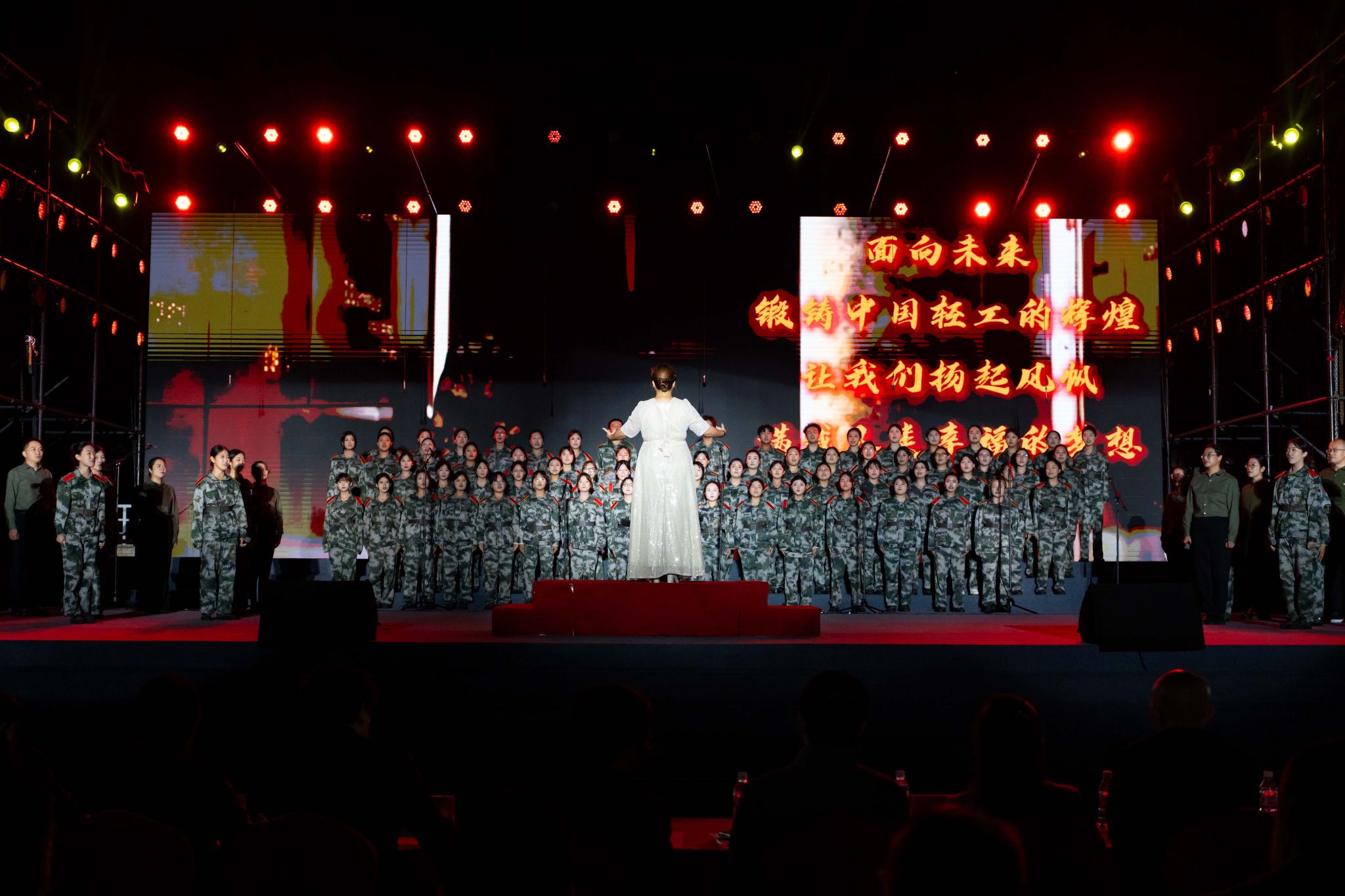本次活动特邀校歌《远航》曲作者、西安音乐学院作曲系二级教授陈大明等多位专家及校内职能部门代表担任评委。由全校15个学院师生组成的合唱队依次登台,以校歌《远航》为必选曲目,辅以各具特色的自选歌曲,融合朗诵、舞蹈、器乐、情景表演等多种形式,展现各学院赓续轻工薪火、凝聚师生力量的价值追求,用嘹亮歌声凝聚起砥砺轻工报国、矢志“双一流”建设的磅礴力量。
