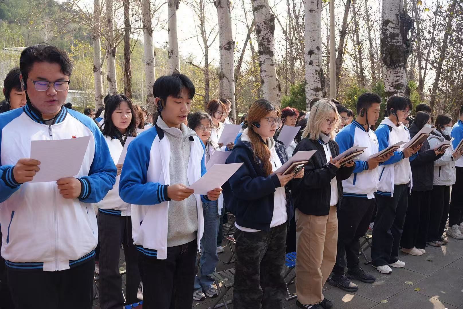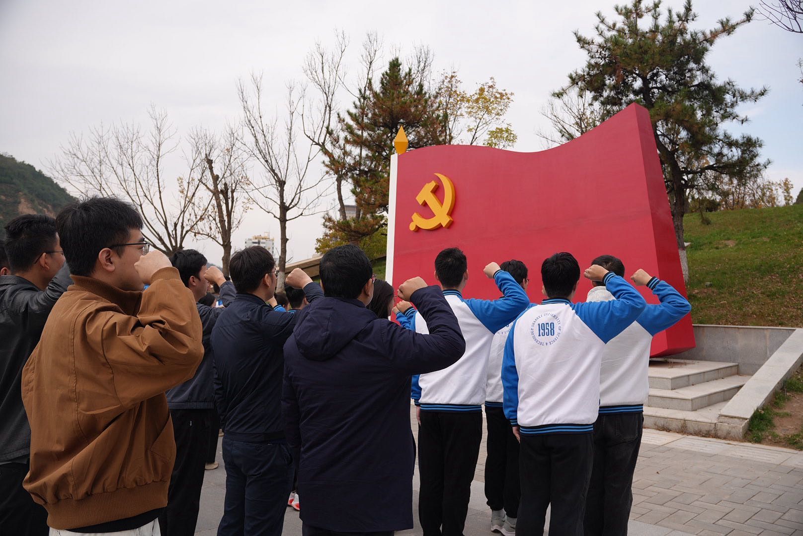 研学最后一站,师生们登上巍巍宝塔山。在庄严肃穆的党旗广场上,师生党员与团员青年重温入党誓词与入团誓词,俯瞰延安城壮阔的景象,历史荣光与时代新貌在此交汇,为这场初心之旅画上了圆满的句号。