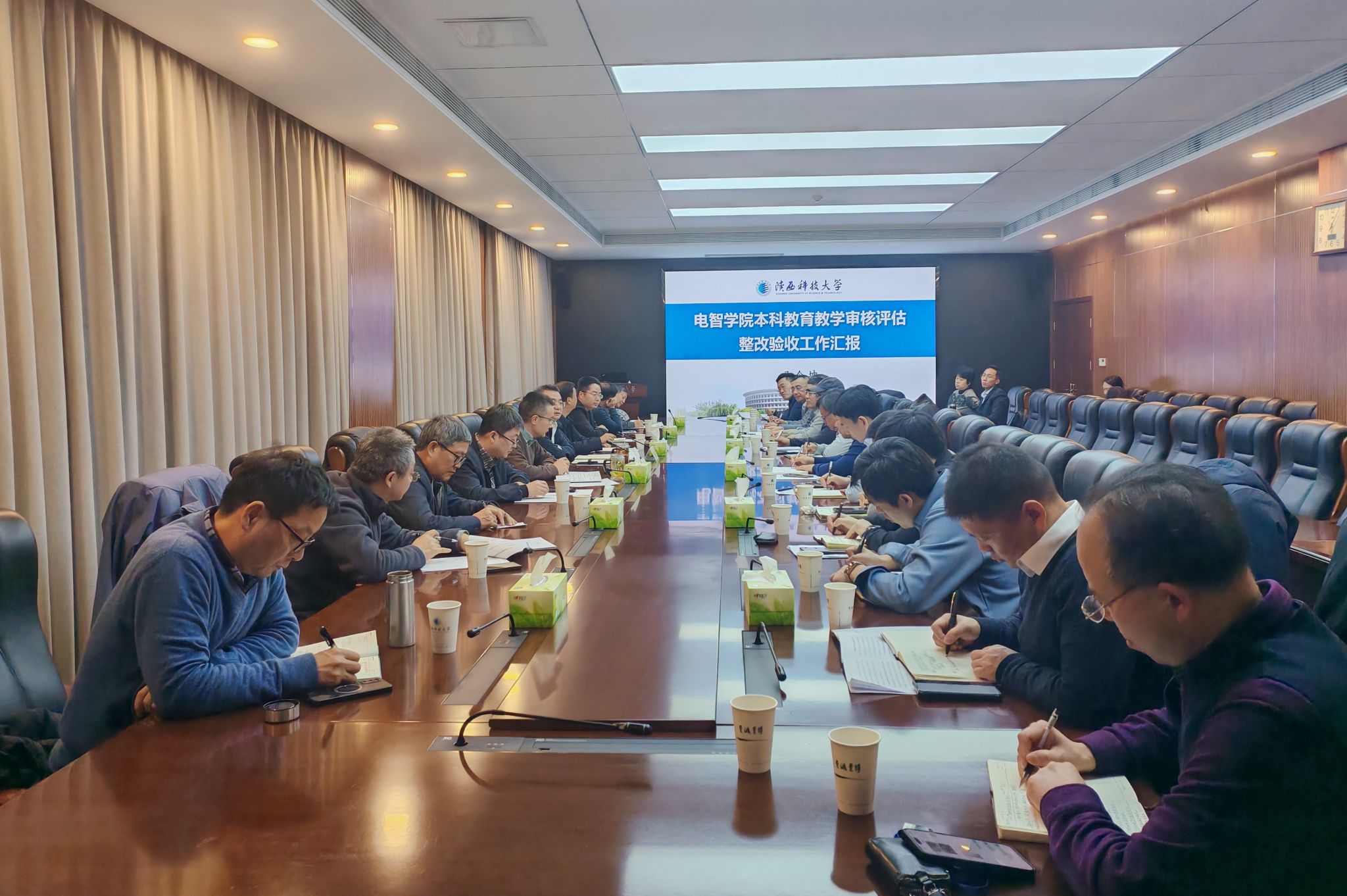 12月1日下午,陕西科技大学在逸夫楼506会议室召开本科教育教学审核评估整改验收工作专题会议,检查各学院(部)整改验收工作成效。党委书记樊建武、校长黄剑锋出席会议并讲话,副校长费贵强主持会议。