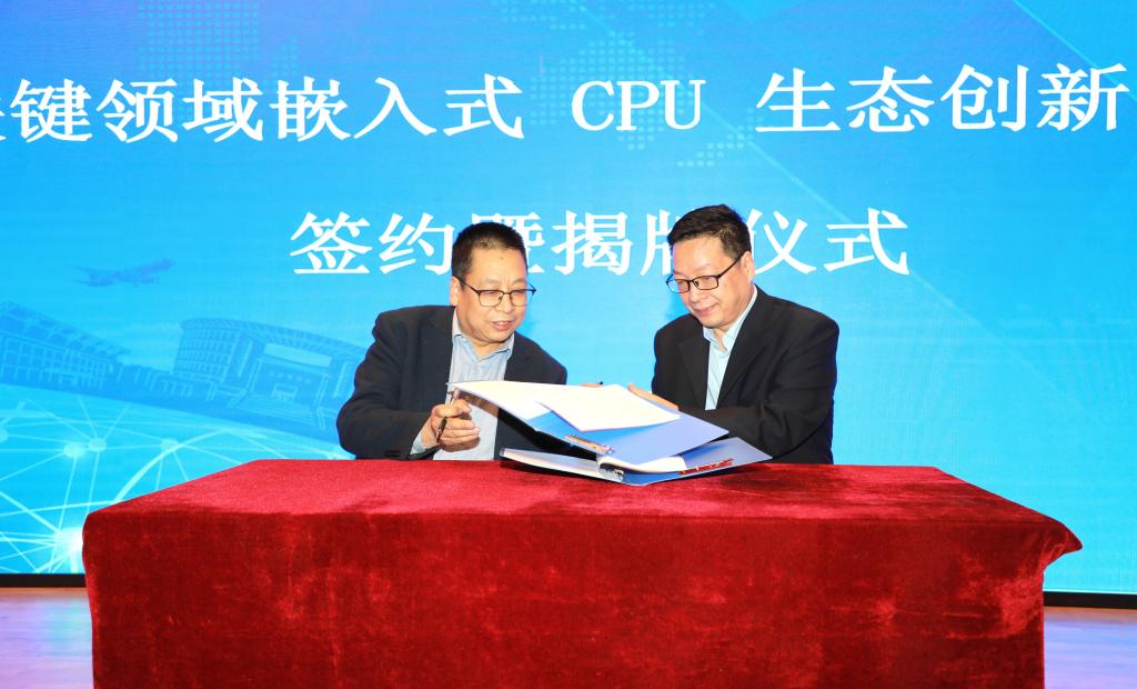电智学院院长马令坤代表学院致辞,并与田泽签订校企合作“安全关键领域CPU生态创新工程中心”战略合作协议。他对翔腾微电子公司、学校相关职能部门在工程中心筹建过程中的大力支持表示衷心感谢。他指出,工程中心的成立有助于学院进一步聚合研究方向,参与解决国家“卡脖子”技术的研究,服务国家战略需求,提升科技创新能力,推动科研项目、产学研用项目合作、落地,提升人才培养质量,学院将积极与企业对接,发挥企业和学校的各自优势,快速推进中心的建设工作。