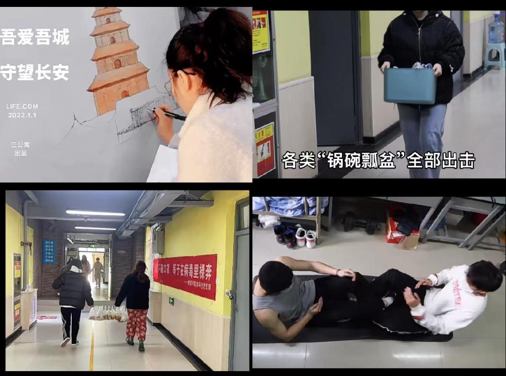 短视频展现花样生活。此次活动的“疫情下的校园花式生活”篇章,鼓励青年师生通过抖音、B站、视频号等平台,用镜头记录疫情之下高校师生学习生活状态,参与话题#疫情下的校园花式生活#讨论,目前话题浏览量已超过35万+。比如,我校“SUST云科大”视频号发布的《论带饭的10086种方式》,用诙谐幽默的语言,为同学们送上方便可行的“6人份带饭操作手册”,引发网友关注点赞。西安电子科技大学发布的短视频《宅在宿舍能干点啥之宿舍健身房》,针对学生单调乏味的宿舍生活,鼓励学生利用有限环境开展体育锻炼,为学生提供详细的“行动指南”。这些生动鲜活的网络作品不仅丰富高校青年的“静态”生活,也让他们将知与行、言与行统一起来,以实际行动参与抗疫。
