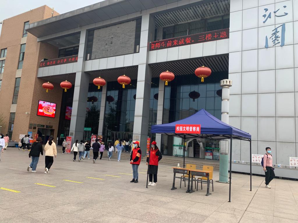 “我们以搭设帐篷的方式设立固定点位督察岗,志愿者们在仔细察看、耐心提醒的同时,还为未佩戴口罩的师生贴心发放口罩。同学们虽然辛苦,但都表示一定会坚守岗位做好工作。”3月16日,在位于沁园餐厅门前的“校园文明督察岗”,校团委副书记赵闯告诉记者。