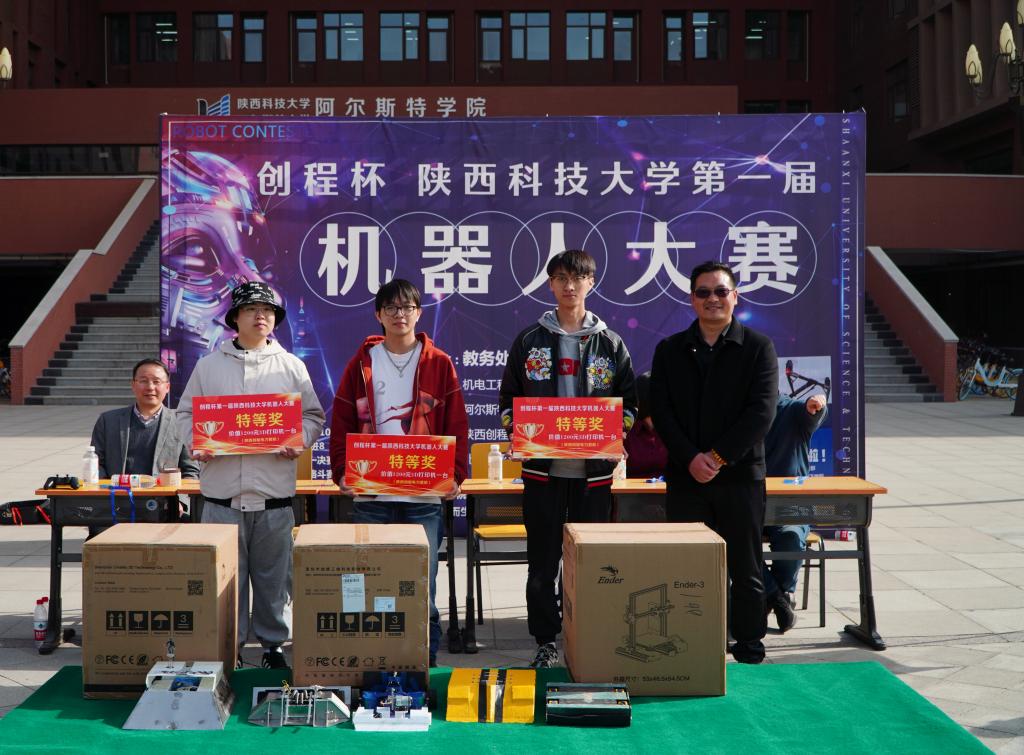 为激励科大青年的创新意识和实践精神,“创程杯”陕西科技大学首届机器人大赛于4月8日圆满落幕。大赛由教务处主办,机电工程学院(智能制造与机器人工程学院)和阿尔斯特学院联合承办,校友会大力支持,陕西创程电力开发有限公司冠名赞助,北京地平线机器人技术研发有限公司、机器人工程专业教研室、校北斗机器人协会提供技术支持,校友总会办公室主任殷立雄,教务处副处长邵亮,机电学院副院长袁越锦,我校校友、陕西创程电力开发有限公司董事长唐秸(管理2000级)、总经理张政(机电2000级)等嘉宾现场指导。