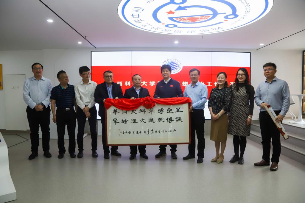 参观前,刘明利代表西安文理学院向我校师生十四运志愿服务期间提供的优质后勤服务保障表示衷心感谢,郑旻现场宣读了感谢信,西安文理学院向我校赠送写有“至诚至博铸就卓越,科大文理同绘华章”的书法作品。