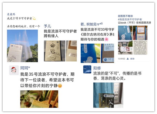 守护不可,流浪的书再出发。为创新阅读推广形式,拓展阅读推广路径,图书馆联合大学生融媒体中心举办第二届“流浪的书”活动。今年4月份,有23本新书又开启流浪模式(配套流浪规则),通过图书馆两位代言人对活动的宣传,由23位热爱阅读有责任心的书籍守护者全程负责书及其配套手册的传递,有保障地完成书籍的流浪之旅,用新颖的形式吸引更多的读者加入阅读的队伍。