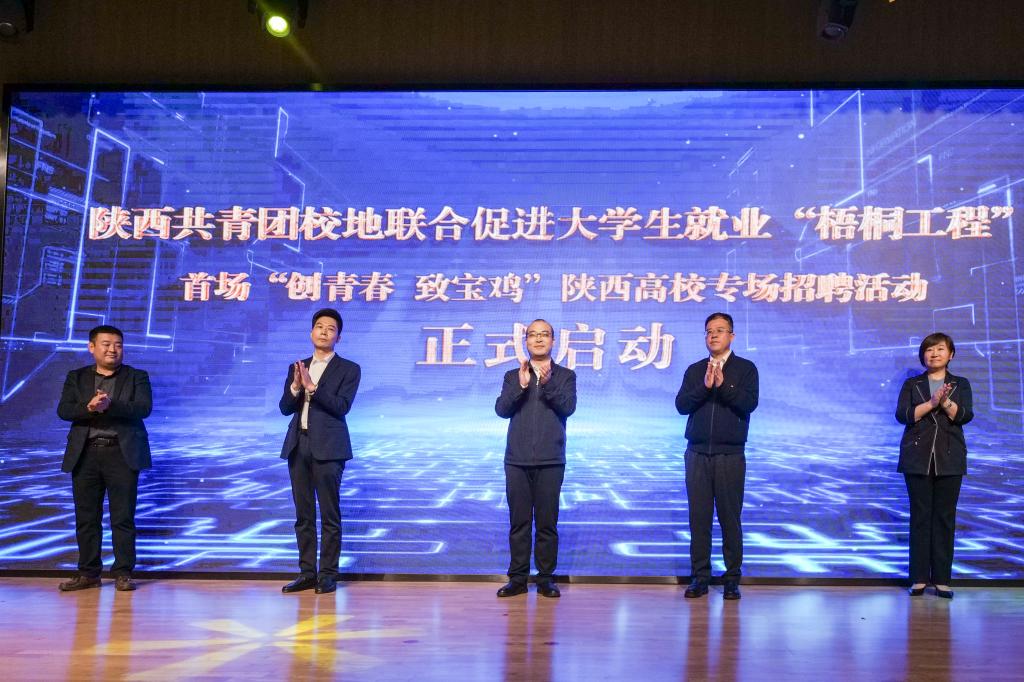 5月8日,陕西共青团校地联合促进大学生就业“梧桐工程”暨“创青春,致宝鸡”——我与青年发展型城市双向奔赴陕西高校宝鸡首场专场招聘活动在我校举办。本次活动由共青团陕西省委主办,宝鸡团市委、宝鸡市人社局、陕西科技大学团委等有关部门承办。共青团陕西省委副书记刘洋、陕西科技大学党委副书记郭强、宝鸡市委副秘书长鲜建强出席活动。来自全省20余所高校的3000余名毕业生参与了本次活动。