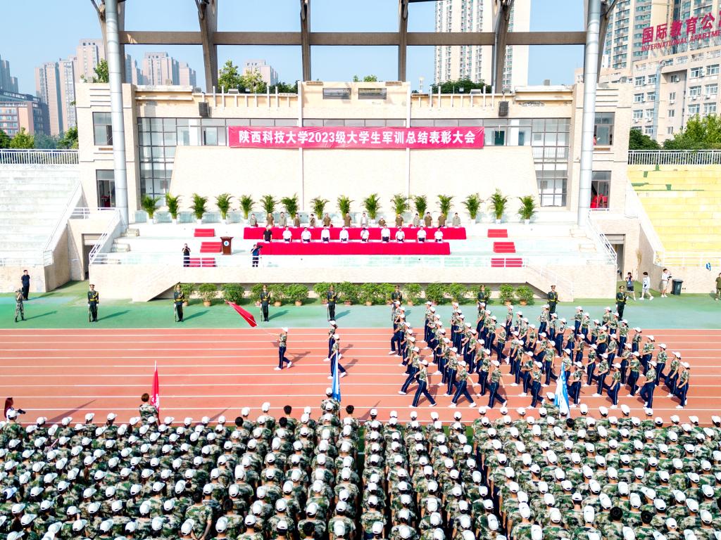 9月8日,我校2023级大学生军事训练总结表彰大会在标准田径场举行。4000余名陕科大2023级学子奕奕神采、豪情满怀,以昂扬的斗志、饱满的精神展示了10天的军训成果。校党委副书记郭强、副校长蒲永平及军训团各部门负责人、各营教导员出席大会。大会由武装部部长张凯凯主持。