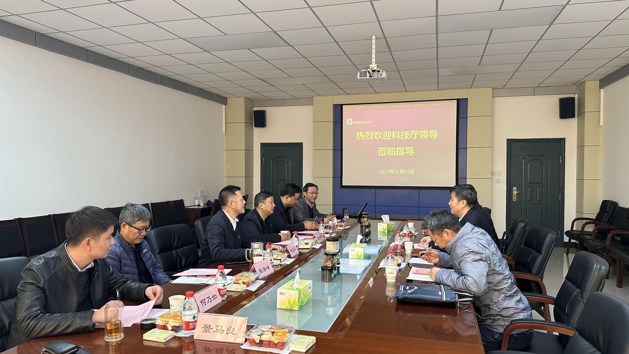 11月29日下午,陕西省委科技工委委员、省科技厅二级巡视员郭杰,省科技厅二级调研员汪德亮,省科技厅二级主任科员白东海等一行三人来我校,就我校申报的“陕西省农产资源干燥加工及综合利用工程技术研究中心”(以下简称工程技术研究中心)建设工作进行考察。副校长黄剑锋会见来宾并出席考察会议,科技处处长助理徐卫涛、机电工程学院(智能制造与机器人工程学院)副院长杨立军、工程技术研究中心负责人袁越锦及相关教师代表参加了考察会,会议由杨立军主持。