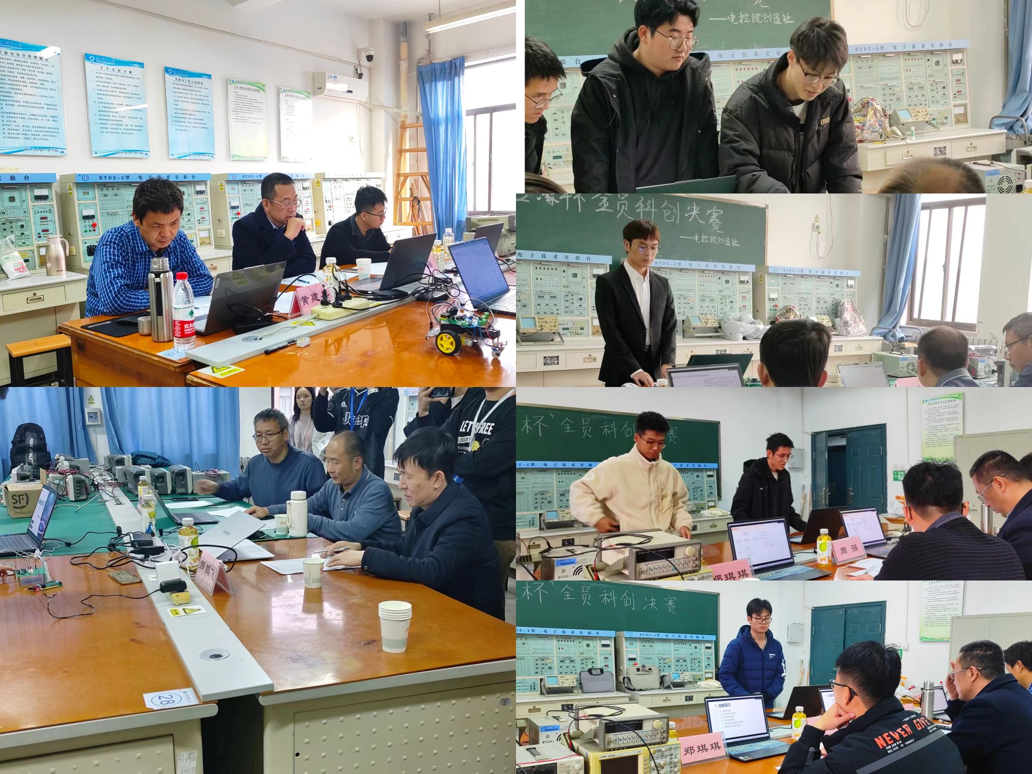 为做好创新人才选拔工作,电控学院副院长周强,创造社指导老师郑琪琪,科创导师黄建兵、蔡陈赟、郝鹏飞、李英春六位老师受邀出席决赛并担任评委,对进入决赛的33件作品开展全面的考核验收。决赛通过答辩陈述、现场功能演示、视频辅助展示、问辩等多个环节,从不同专业角度进行考核,确保作品功能全部实现、团队成员充分参与、评选结果公平公正,现场氛围十分热烈。
