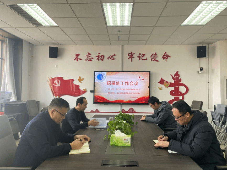 2月25日上午,在招采处新学期工作会议上,传达学习学校第三次党代会精神、安排部署新学期工作。招采处处长张学平传达了校党委书记樊建武在党代会上所作的《强基固本 蓄势赋能 为推动学校高质量发展 谱写“双一流”建设新篇章而努力奋斗》工作报告。会议围绕党代会报告中与招采工作相关的内容进行了逐一解读,对照2024年度招采处的具体工作任务进行了安排部署。据悉,寒假期间,为了解决开学之初上级主管部门尚未正式下达学校2024年部门预算批复,政府采购无法进行,但铁电分析仪、纤维材料成型器等几项“双一流”建设设备采购项目又迫在眉睫的矛盾,招采处提前研判,与上级主管部门积极对接沟通,申请到1000万元预采购额度,及时进行项目论证,保证了招采工作和教学科研的如期开展。