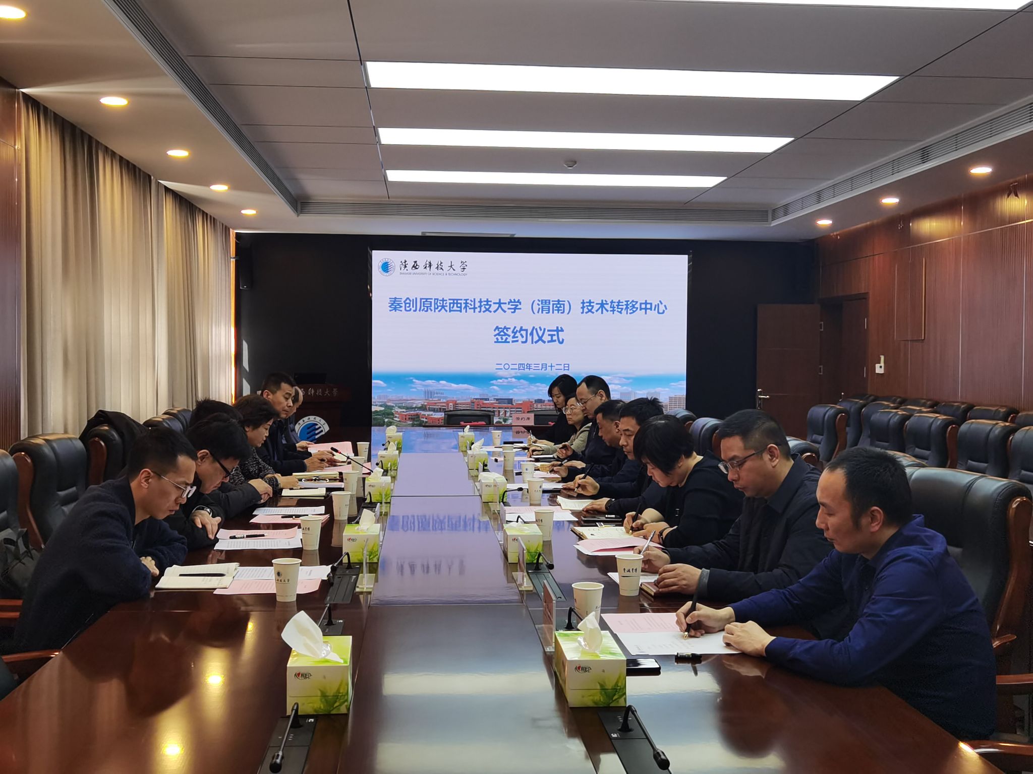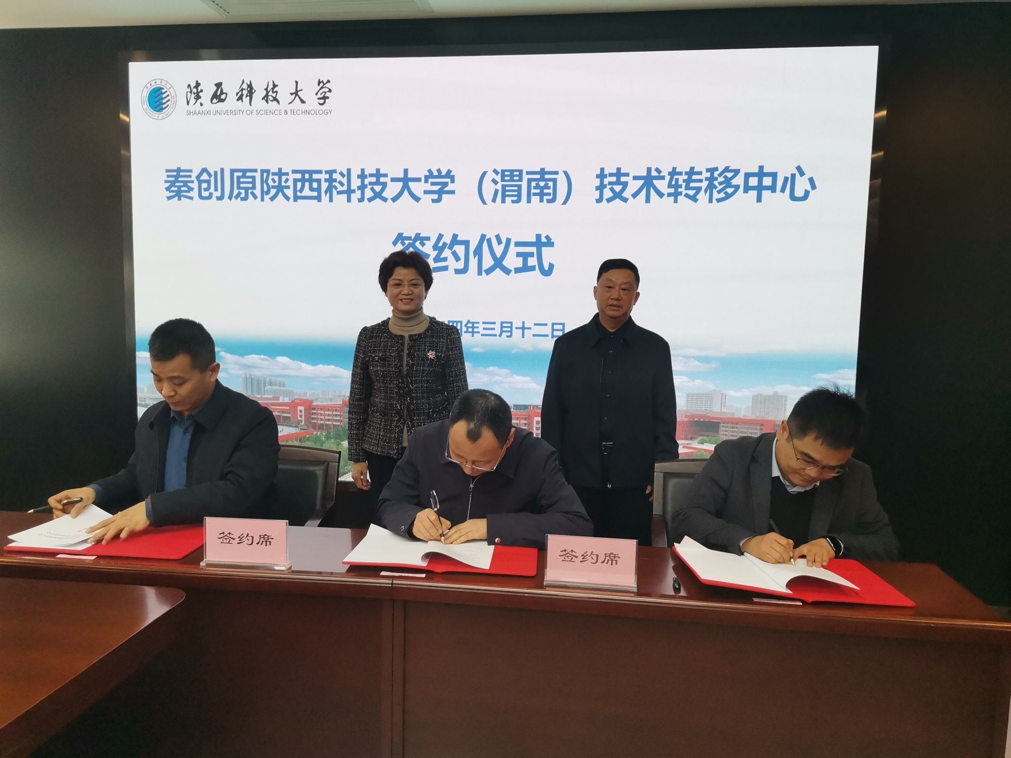 为深入实施服务社会创优行动,促进科技成果转移转化,前期在省委主题教育巡回指导组和我校主题教育领导小组指导和支持下,多部门充分沟通,3月12日上午,由渭南市科学技术局、渭南高新技术产业开发区管理委员会与我校联合共建的秦创原陕西科技大学(渭南)技术转移中心签约仪式在我校举行。渭南市科学技术局局长陈改萍,渭南高新区党工委委员、管委会副主任白雪亮,渭南市科学技术局副局长张胜康,渭南高新区秦创原科技资源统筹中心主任东琦等相关领导参加签约仪式,我校副校长黄剑锋出席并讲话,前沿科学与技术转移研究院、陕西农产品加工技术研究院、材料科学与工程学院(文物保护科学与技术学院)、食品科学与工程学院(生物与医药学院)、化学与化工学院相关负责人参加活动,会议由前沿院副院长张鹏伟主持。