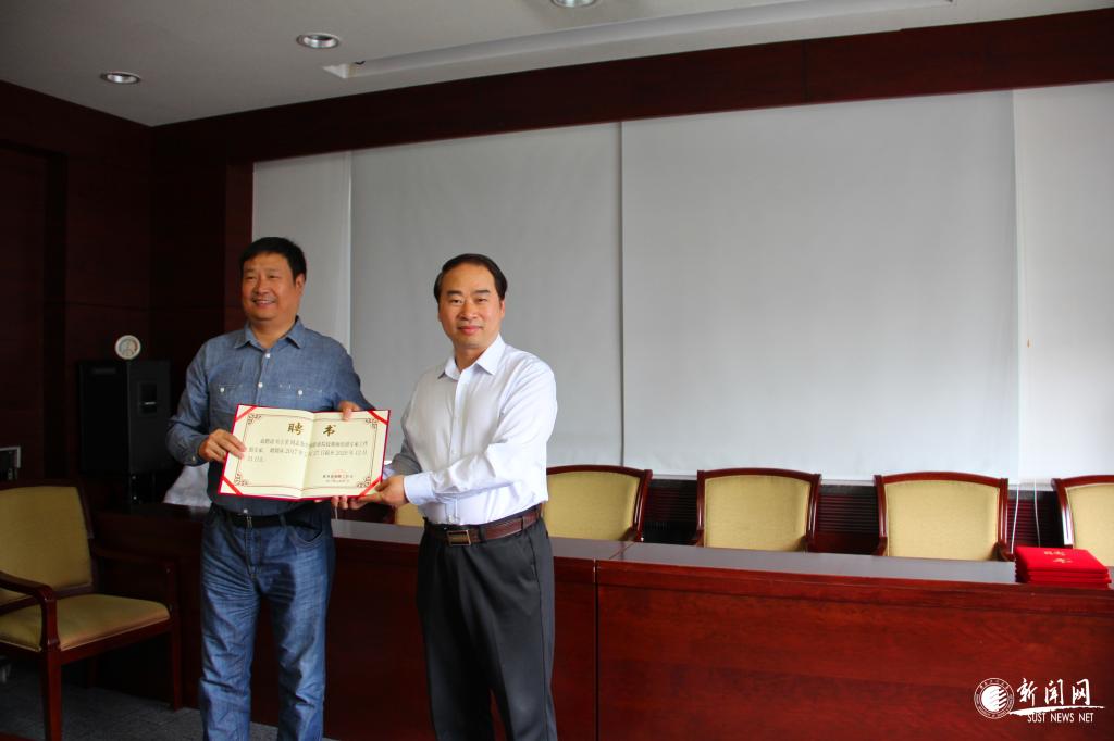 教育部教师司司长王定华为刘正安(左一)老师颁发聘书