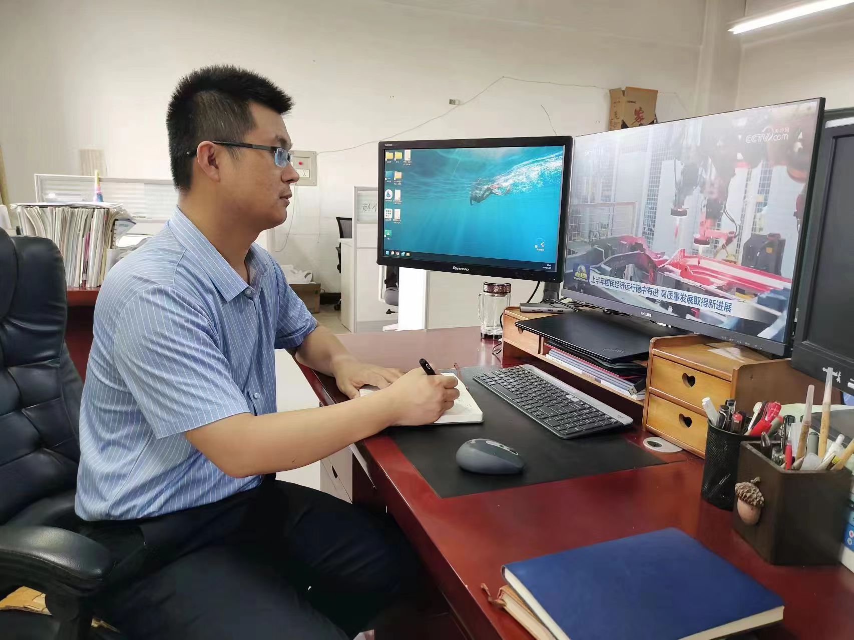 机电学院党支部书记宋文杰副教授表示,看到我国上半年制造业在GDP中占比持续提高,特别是装备制造业增加值增长7.8%,增速已经连续11个月高于工业平均水平,新质生产力正在加快形成。新征程上,作为装备制造业领域的教学科研人员,我们要持续进行创新,向着高端化、智能化、绿色化加快推进,响应习近平总书记的号召,将论文写在祖国的大地上,将高校的科研成果转化为新质生产力,实现产业化。
