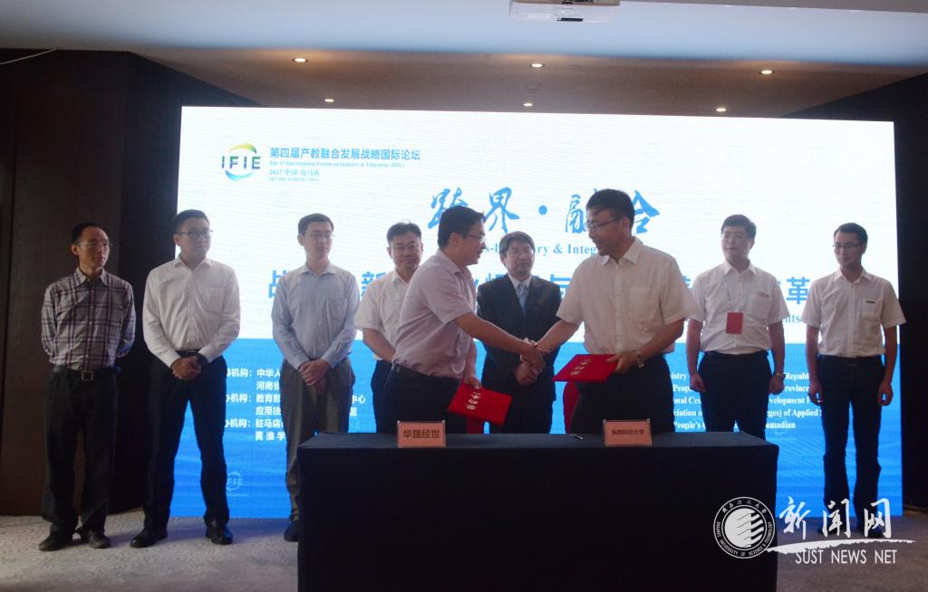 6月23至24日,由教育部学校规划建设发展中心、应用技术大学(学院)联盟主办的第四届产教融合发展战略国际论坛在驻马店市嵖岈山国际会议中心举行。我校副校长郭霄鹏一行参加论坛,并签订了《互联网+中国制造2025产教融合创新基地合作协议》。