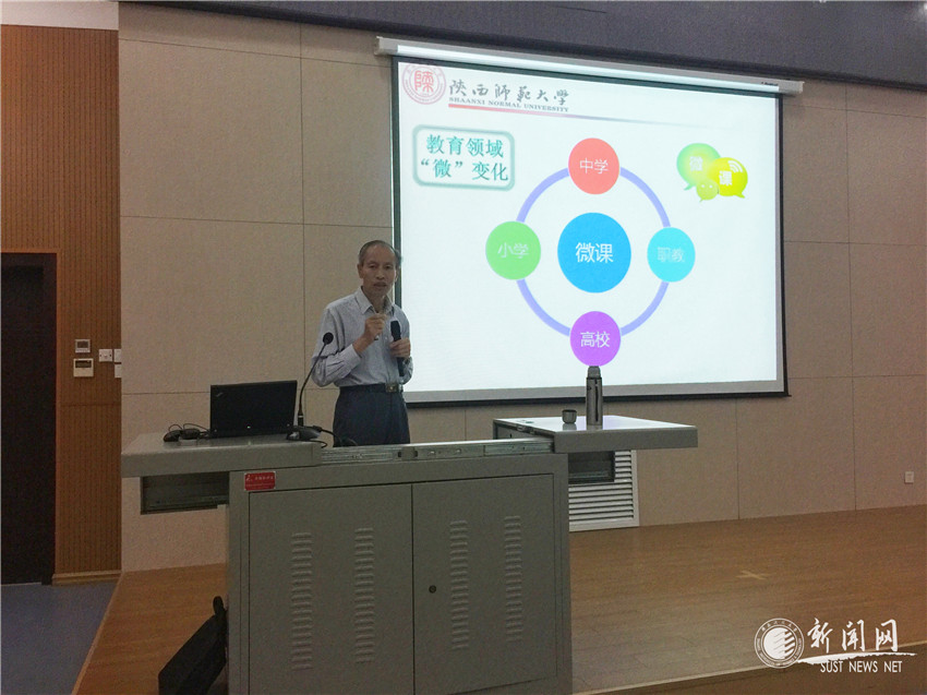 根据“陕西省第二届高校教师微课教学比赛”要求及赛程安排,我校进行了紧张有序的组织及校内选拔工作。9月26日下午,教师发展中心特邀国家级教学名师、全国优秀教师、陕西师范大学博士生导师傅钢善教授为部分中青年教师作题为《微课制作方法与教学实践》的讲座。旨在进一步加深我校教师对微课的认识,提高微课制作水平。