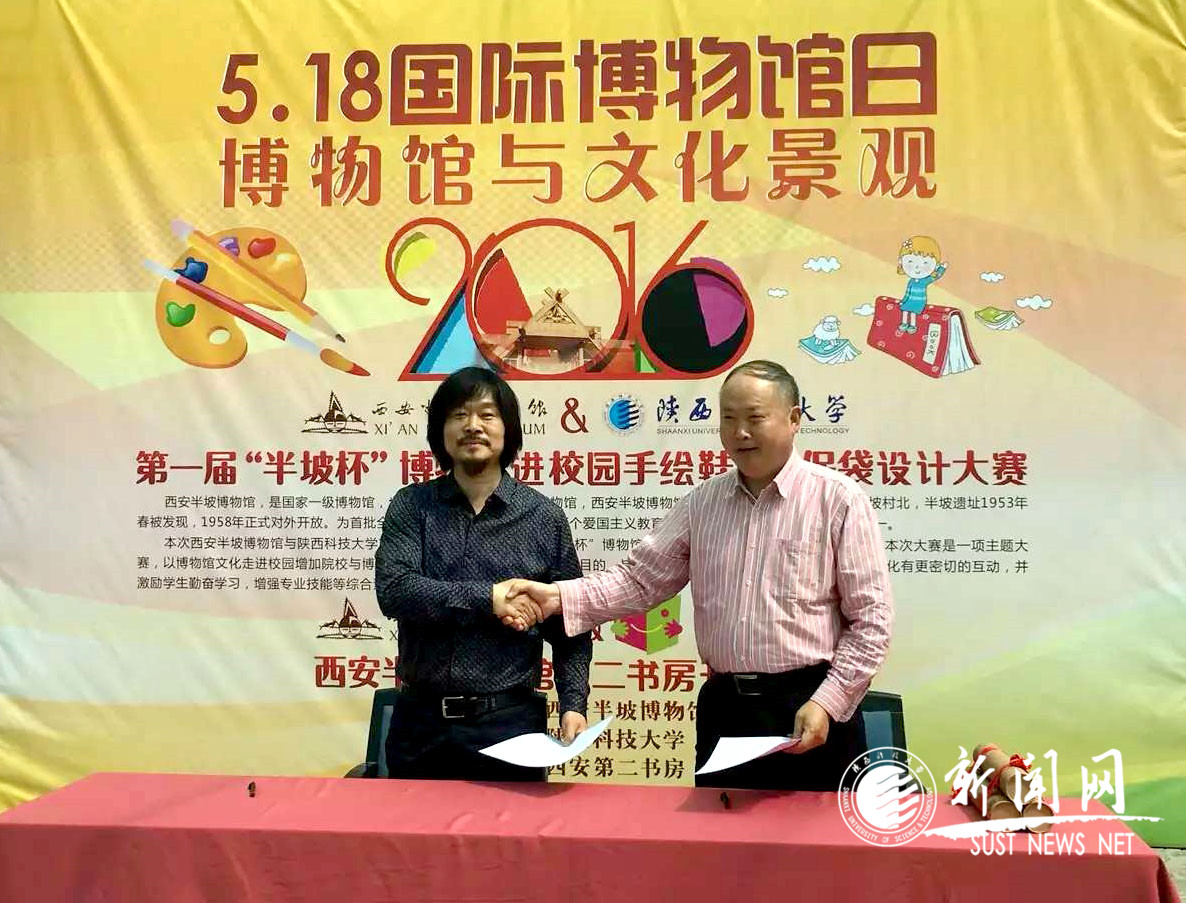 陕西省民间文艺家协会副秘书长刘丽玲女士、西安半坡博物馆书记杨新弟、西安半坡博物馆张礼智馆长、我校设计与艺术学院执行院长詹秦川及相关专业教师出席了此次活动。活动当天,各评委对近两百件参赛作品进行了现场评审,从中遴选各项入围作品。评审会后詹秦川与张礼智就博物馆如何弘扬传统文化、协创“一带一路”大格局以及高校服务地方经济等问题进行了深入探讨,并签订了《西安半坡博物馆与陕西科技大学设计与艺术学院共建爱国主义教育与教学实践基地》合作协议书。