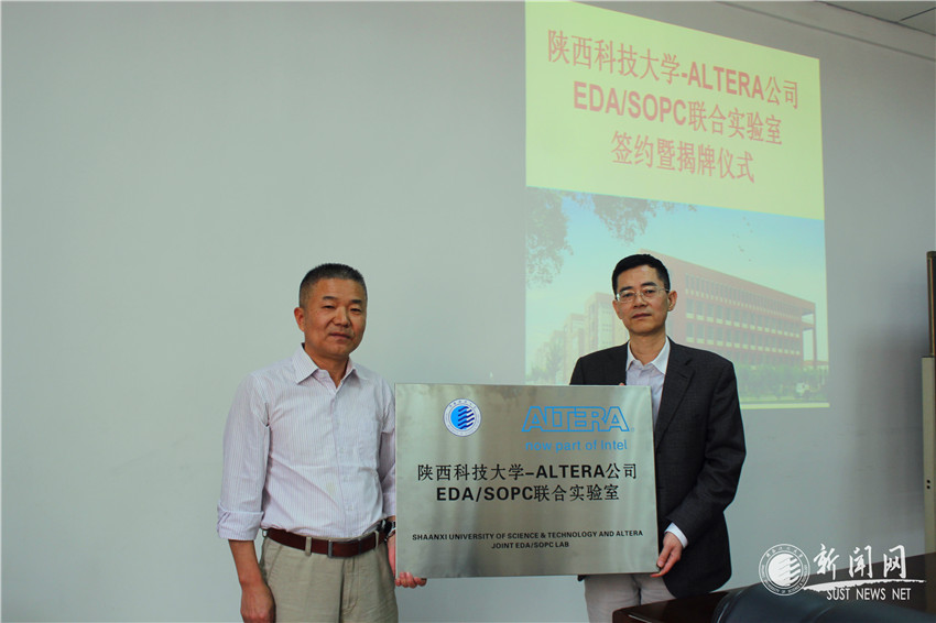 近期,“陕西科技大学-ALTERA公司EDA/SOPC联合实验室签约暨揭牌仪式”在电气与信息工程学院会议室举行。出席会议的有副校长王学川,ALTERA中国区大学计划经理陈卫中,电信学院院长党宏社、副院长李健,会议由李健主持。