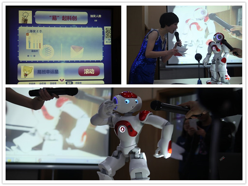 本次比赛首次以“易班”为网络互动平台,通过全新的抽奖环节,调动了现场观众的积极性和参与感。决赛现场更现神秘嘉宾——学院实验室研究项目“NAO机器人”,它为现场观众献上两支动感舞蹈,并通过与主持人的灵活对话,让在场同学领略到了科技创新的魅力,将现场气氛推向了高潮。