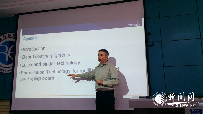 帕卡教授作了题为“The Latest Development in Coating Technology for Multilayer Coated Packaging Board(多层涂布包装纸板的涂布技术最新研究进展)”的学术报告。学术报告总共分为三个部分,详细阐述了颜料粒子的粒径分布对涂层的影响,简要介绍了胶黏剂的种类、淀粉和胶乳性能及应用情况,以及胶乳的性能、用量、粒径分布、玻璃化转变温度对成品的影响。最后介绍了多层涂布配方技术,帕卡教授指出,预涂是影响纸张强度的主要因素,在适宜的范围内增大预涂中胶黏剂的用量对纸张强度的提高非常有效。