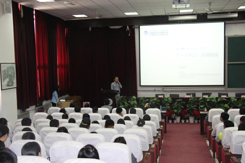此次活动的冠名单位——开利运输冷冻有限公司中国区销售/售后/市场部总经理高戈,作了题为《食品安全与冷藏运输》的报告,从冷链物流装备的角度介绍了开利公司冷藏装备发展情况、国内冷藏运输市场状况及前景,最后简要介绍了公司对人才的培养政策及要求,为学生进入外企工作提出了良好的建议。