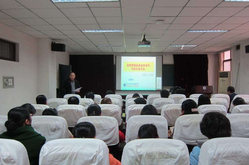 化学与化工学院将2015年国家自然科学基金申报工作列为学院科研管理工作的重点。为了鼓励学院教师积极申报2016年国家自然科学基金,帮助教师提高撰写基金申请书的质量,2015年11月23日,化工学院邀请西北大学高胜利教授为我院教师做了题为“如何把国家基金申请书写得尽善尽美”的报告。