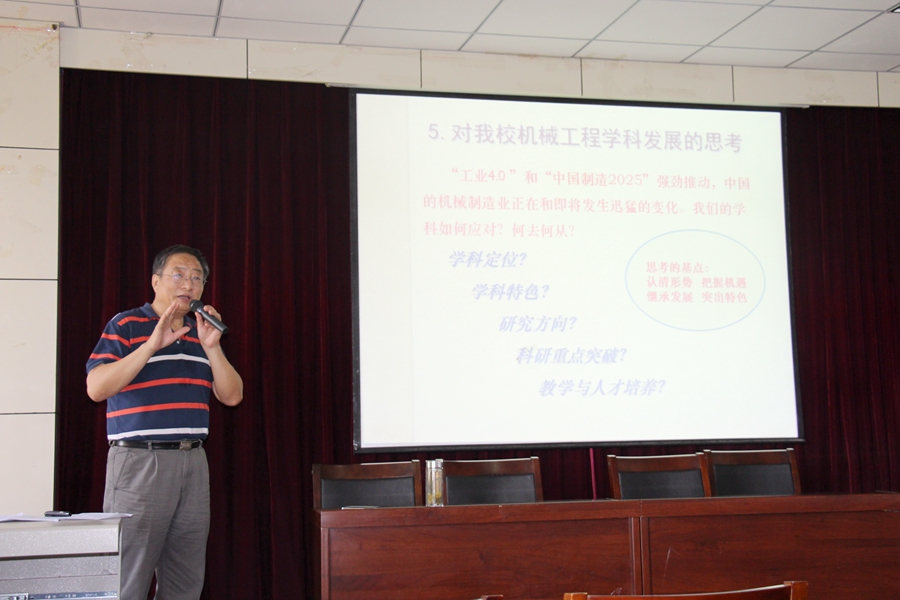 报告开始,曹巨江教授首先提出我国机械装备制造业面临的机遇与挑战以及如何发展的问题,然后就“工业4.0”和“中国制造2025”的概念与战略要点进行了解读。随后,他结合学校和学院的实际情况,引导全院教师在认清形势、把握机遇、继承发展、突出特色的基础上对我校机械工程学科发展进行思考。