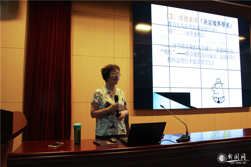 西安电子科技大学马克思主义学院宋义霞教授9月22日做客我校名师论坛,面向全校200余名青年教师做师德师风专题讲座。此次讲座旨在贯彻落实教育部、省教育厅及学校师德师风建设有关文件精神,积极引导全校教师做有理想信念、有道德情操、有扎实学识、有仁爱之心的人民教师。