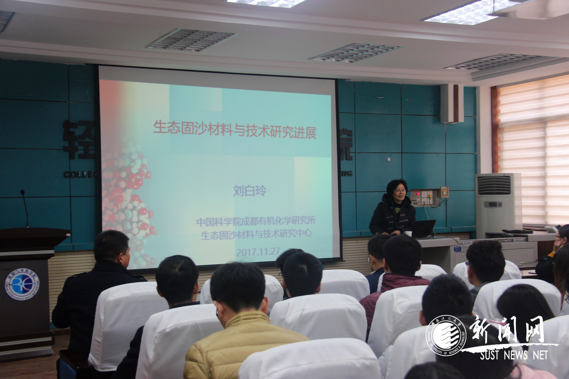 11月27日下午,中国科学院成都有机化学研究所刘白玲教授作客我校“未央导师论坛”,在轻工学院学术报告厅为学院师生作了题为《生态固沙材料与技术研究进展》和《谈谈研究生的工作》的学术报告会。校长马建中教授、研究生院副院长以及轻工学院相关负责人参会。报告会由轻工学院副院长吕斌主持,学院部分教师和硕博士研究生参加了此次报告会。
