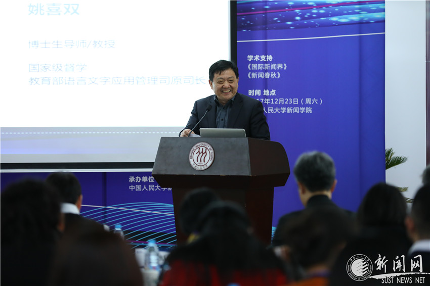 12月23日,由中国人民大学、广西艺术学院主办,中国传媒大学播音与主持艺术学院、陕西科技大学设计与艺术学院等协办的“2017中国主持传播论坛”在中国人民大学贤进楼开幕。设计与艺术学院党委书记刘子建及15名教师与研究生参加会议,与来自清华大学、中国传媒大学、中国人民大学、重庆大学等全国高校的学者一同进行学术交流研讨。本次论坛以“网络•主播——融媒体时代的主持传播”为主题,共有来自全国高校的播音学、新闻学学者及业内精英150余人参会。