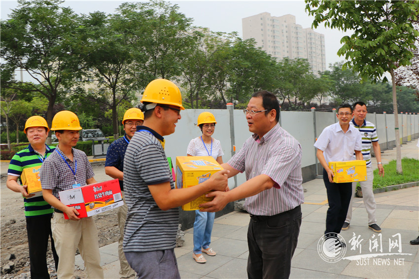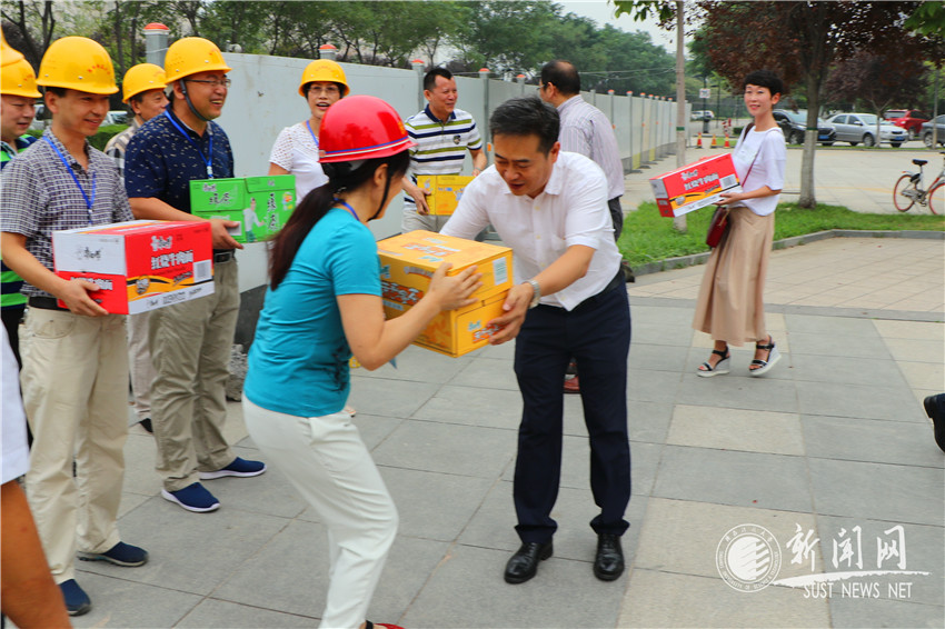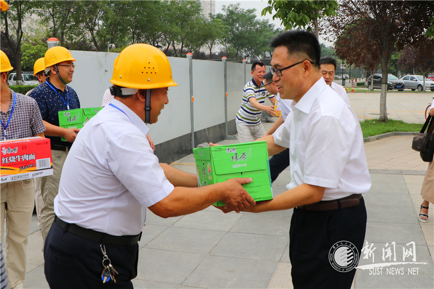 8月2日暑假期间,校党委书记姚书志、校长马建中、副校长蔡煜东、纪委书记王树茂深入我校西安、咸阳两校区基建工地,慰问在高温天气下坚守在工作岗位上的一线职工,为他们送去夏日的清凉与关爱。