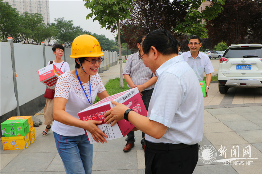 姚书志、马建中一行先后到西安校区教学区环道维修工程、开闭所扩建项目和咸阳校区陕科大强华学校中心楼改造项目等工程项目现场,亲切看望和慰问在岗的工作人员,代表学校党政领导和全校师生,向他们表示了衷心的感谢,并送上了防暑降温慰问品。