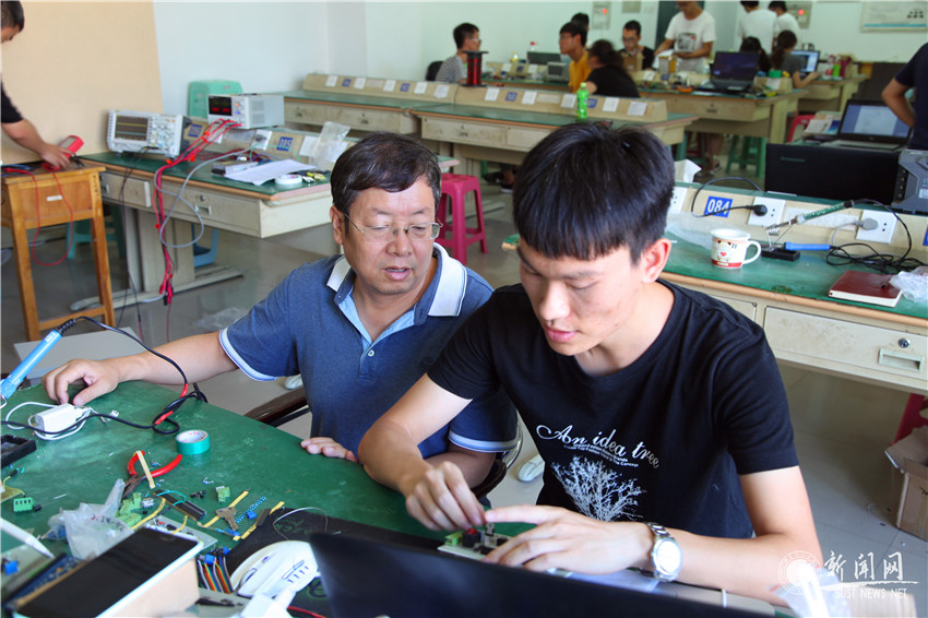 晚上10点钟,电气与信息工程学院实验室依然灯火通明,全国大学生电子设计竞赛陕西赛区的比赛正在如火如荼地进行着,17个竞赛团队的51名参赛学子不畏酷暑,正聚精会神地准备着各自的竞赛作品。张震强、侯勇严两位负责老师表示,电子设计竞赛是全国大学生四大学科竞赛之一,学校历来重视,从3月份开始,我校13名指导老师就通过初步选拔、集中培训、学生分组、专项培训、赛前强化等环节准备今年的比赛。学生们热情也极高,从8月9日上午8点至12日晚8点,从选题开始,到出设计报告、动手制作实物作品,他们分秒必争,以饱满的热情、坚定的信念不断努力着。张震强表示,电子设计竞赛的举办,对我校电子信息类课程的教学改革与促进起到推动作用,也培养了学生的创新能力、实践操作能力以及团队协作精神,这个暑假,师生收获都很大。