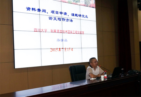 7月15日15时,四川大学制革清洁技术国家工程实验室专家廖学品教授在图书馆一楼学术报告厅,为我校研究生作了题为“科学研究及论文”的报告。他从资料查阅、项目申请、研究方法、论文写作及外文投稿几方面作了详细生动的讲解,并就论文写作和科学研究与同学们做了深入交流。教授学术功底扎实,理性客观,思维缜密,语言风趣幽默,对我校研究生进一步提高科学研究及论文写作的方法和技巧提供了有很大的帮助。副校长王学川教授、资环学院副院长马宏瑞教授参加了报告会,报告会由资源与环境学院副院长薛朝华教授主持。