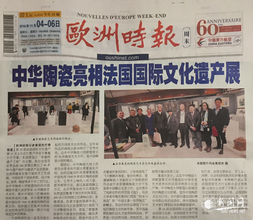 11月2日至6日,第22届法国国际文化遗产展在法国卢浮宫拉开帷幕,我校设计与艺术学院高黎老师携带陶艺作品《皮影的故事》、《绽放》应邀参加此次展览,并受到《欧洲时报》等媒体的报道。