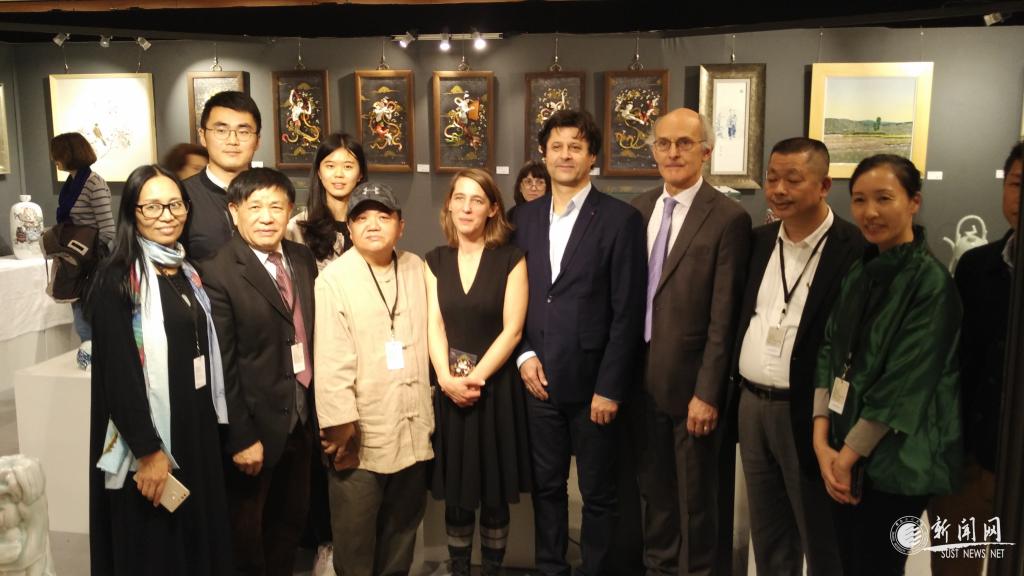 高黎老师(左一)与法国国家艺术行业联合会前任(右四)和现任主席AUDE TAHON(左四)及陶瓷艺术家参观嘉宾合影