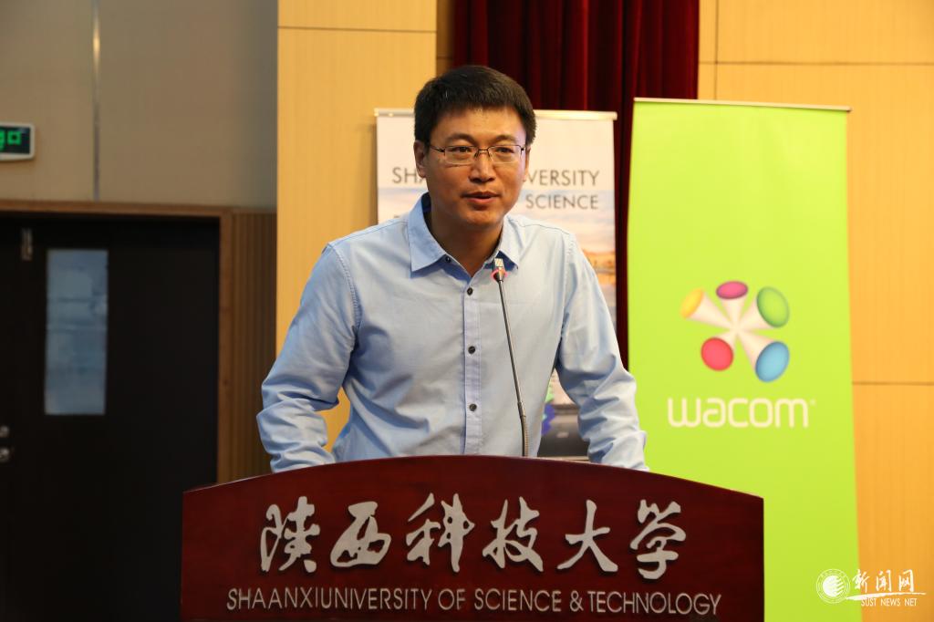 刘俊麟在致辞中回顾了与陕西科技大学的合作经历,对我校多年以来在科技与人才方面的支持和合作表示感谢。他指出,Wacom公司长期以来致力于传播先进的CG理念,近年来在国内多所大学开展艺术沙龙、学术报告,有效促进了行业前沿技术需求与学生专业技能的对接。他希望未来能继续与我校保持良好合作,共同促进国内CG产业的发展。