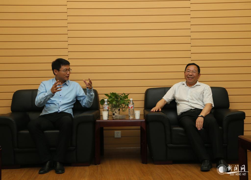 会前,姚书志与刘俊麟就校企合作等相关事宜进行座谈。