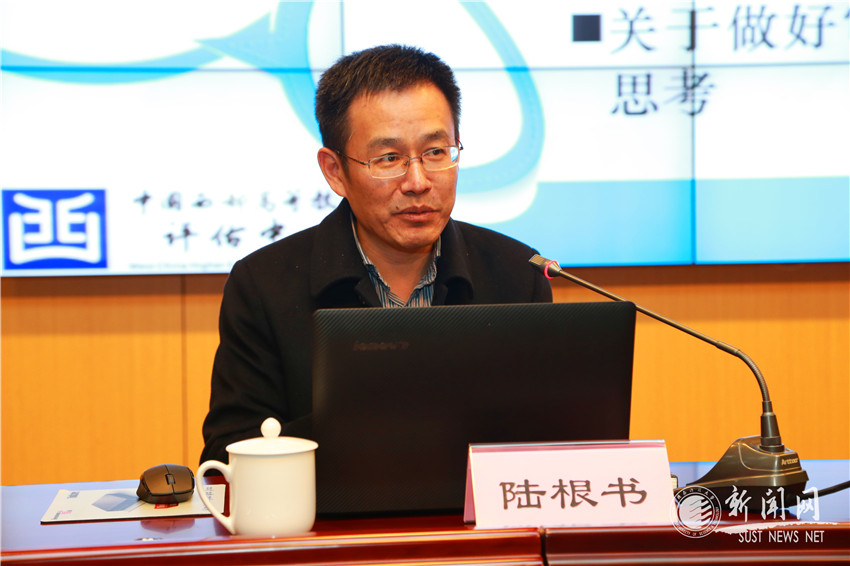 陆根书教授在报告中,从审核评估的由来与重要意义、审核评估的内涵与特点和关于做好审核评估的几点思考等三个方面,深入解读了学校做好迎评促建工作。他介绍了本科教学工作审核评估的目标、重要内容与基本形式、重要意义,剖析了审核评估与在全国高校开展的第一轮本科教学工作水平评估相比呈现的重要调整和特点,以及陕西省审核评估工作及其特色,并就如何界定高校办学定位于人才培养目标定位、如何认识教学质量标准、如何理解审核评估方案中的“特色项目”、学校自评如何体现“五个度”等问题,谈了自己的认识和体会。