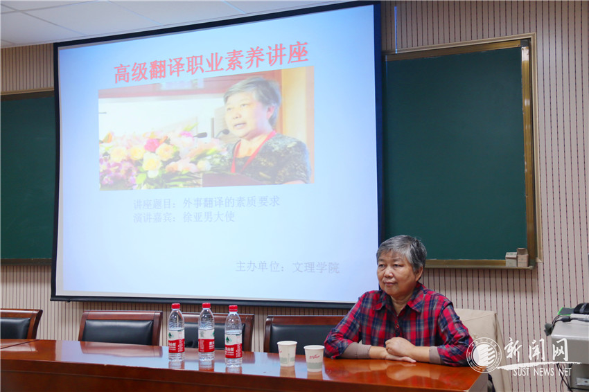 10月14日下午,应研究生院、文理学院邀请,外交部前翻译室主任徐亚男大使来我校作了题为“外事翻译的素质要求”的学术报告。报告会由文理学院院长蔺小林教授主持。文理学院外语系教师、翻译硕士研究生及英语专业本科生参加,西安工业大学有关老师代表也专程聆听了报告。