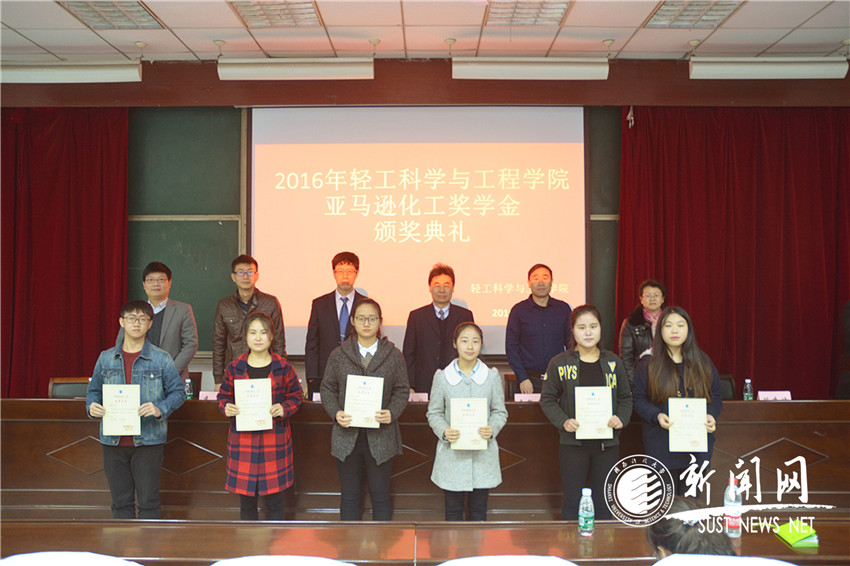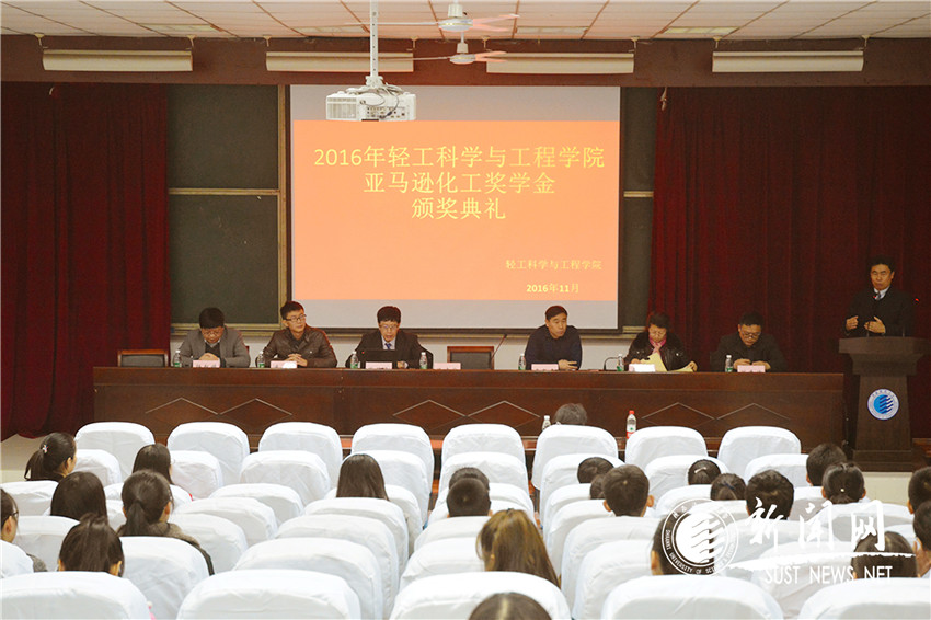 11月21日,轻工科学与工程学院2016年亚马逊化工奖学金颁奖典礼在三号教学楼101举行。亚马逊公司中国区销售总监温国建、技术总监周振平,轻工学院党委书记李新平、党委副书记李晓、副院长张素风、造纸教研室主任陆赵情以及张美云教授出席本次典礼,仪式由院长助理陈李斌主持。