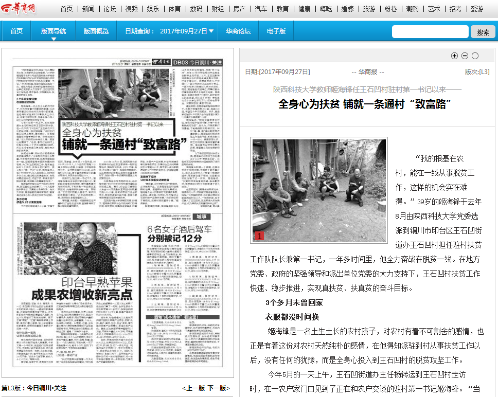 陕西科技大学教师姬海锋任王石凹村驻村第一书记以来——