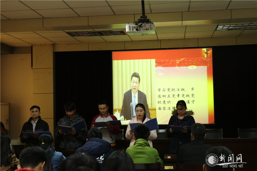 能动专业学生党支部于12月22日开展“不忘初心,党员朗诵”主题党日活动。学院党委书记夏祥林作为党支部联系人出席本次活动。夏祥林讲解了党委委员联系党支部的工作制度,并对此次党日活动的内容和形式进行了充分肯定。他指出,大学生党员要珍惜现在的大学时光,要将实现远大抱负与脚踏实地相结合,规划好大学四年生活,做一名有理想、有担当的新时代大学生党员。支部全体党员同志庄严举起右拳,重温入党誓词。铿锵有力的誓词是一种无形的力量,提醒每一位党员同志增强党性修养,时刻不忘党员的初心和使命。37名党员和积极分子分别从党的十九大报告、《习近平谈治国理政》、《习近平的七年知青岁月》、《之江新语》、《习近平:青年要自觉践行社会主义核心价值观——在北京大学师生座谈会上的讲话》中节选7组经典片段进行朗读,同志们的朗读生动而富有感染力,给人深深的触动和思考。机电学院把学习宣传贯彻好党的十九大精神作为首要政治任务抓,并以党的十九大精神指导实践、凝心聚力,推动工作。