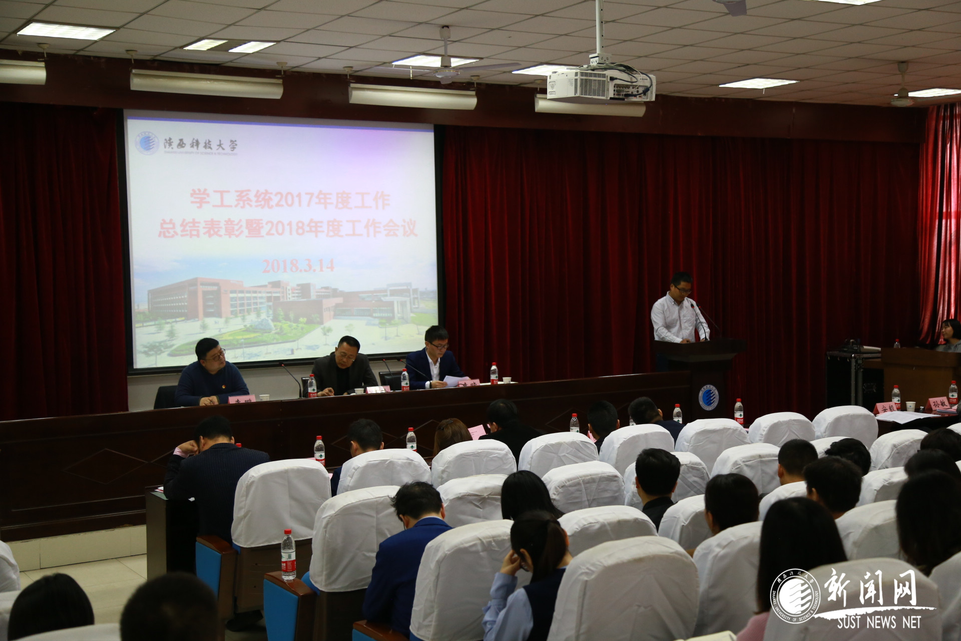 3月14日,我校学工系统在三号教学楼101报告厅召开2017年度工作总结表彰暨2018年度工作会议。校党委副书记温锋,学工系统全体工作人员参加了会议,会议由学工部部长李晓主持。