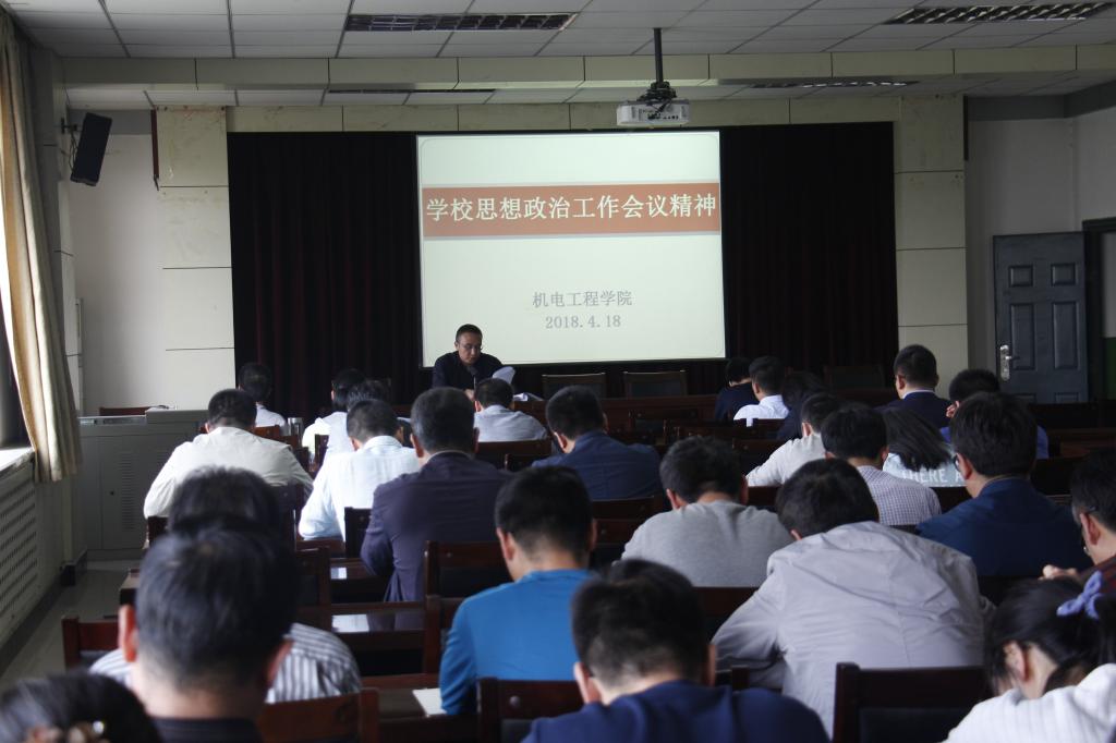 近日,机电工程学院通过召开中心组扩大学习、学生工作专题会议和全体教职工大会,分批次、分类别,有针对、全覆盖的学习、传达和贯彻了学校思想政治工作会议精神及校党委书记姚书志在学校思想政治工作会议上的专题报告。