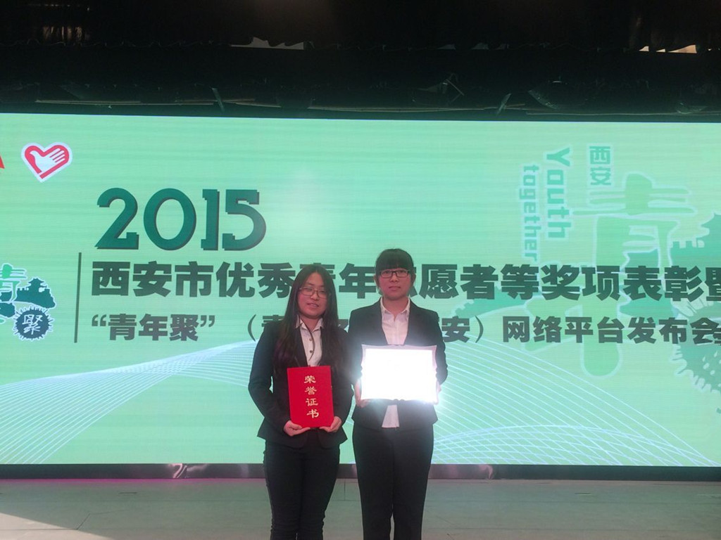 12月30日,由共青团西安市委、西安市青年志愿者协会组织的西安市优秀青年志愿者表彰大会在西安市青少年宫举行。我校资源与环境学院“三叶草”青年志愿者服务团荣获“西安市青年志愿者工作优秀组织奖”、食品与生物工程学院食质121班梁宝琳同学荣获“西安市优秀青年志愿者”。