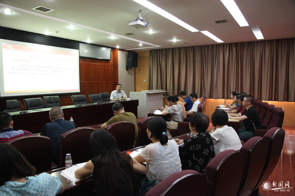 7月13日,副校长郭霄鹏深入联系指导的经济与管理学院会计人力党支部检查指导“两学一做”学习教育开展情况,并为该支部和所在的发展规划处支部、主管的国资处党支部、网络管理中心党支部全体党员讲授“不忘初心努力工作 做一名合格的高校党员”的专题党课。
