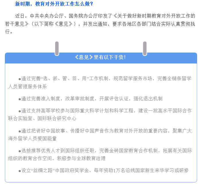 【政策速递】教育开放工作今后要这样做!中办国办发文了