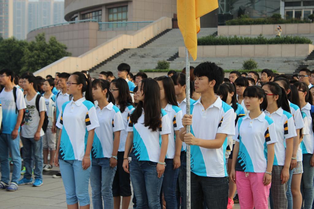 在清晨的微风中,国旗护卫队队员迈着矫健的步伐,以飒爽的英姿护送五星红旗进入广场。随着一声令下“升国旗,奏唱国歌!”,雄壮的《义勇军进行曲》响起,升旗手振臂一挥,鲜艳的五星红旗冉冉升起,全体师生高唱国歌,向庄严的五星红旗行注目礼。